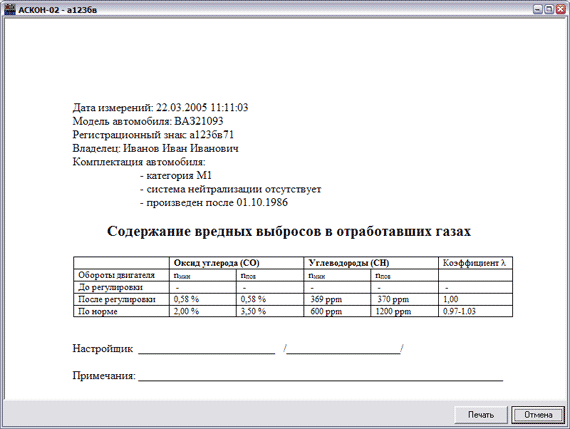 печатать на подключенном к компьютеру принтере результаты измерений согласно ГОСТ Р 52033-2003 (рис. 4). Пользователь может по своему усмотрению менять форму бланка вывода распечатки, например, добавлять в документ логотипы и контактную информацию;