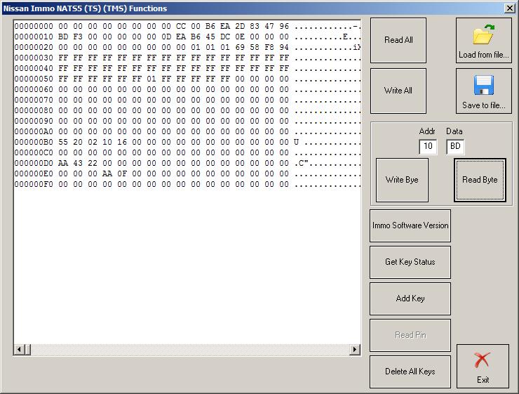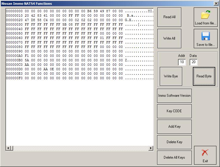 Извлечение версии программного обеспечения иммобилайзера, чтение / запись EEPROM из иммо, чтение кодов ключей, добавление ключей, удаление определенного ключа, удаление всех ключей.