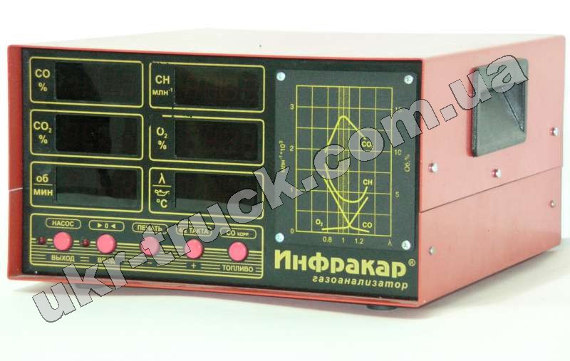 Четырехкомпонентный газоанализатор первого класса точности. . Диапазоны измерений: СО - 0.....5 % , CH - 0....3000 ppm; СО2: 0 - 16%, О2: 0 - 21 %, : 0...2; n: 0...6000 мин-1 . Относительная погрешность измерений ± 5 % для СН канала, для всех остальных каналов ± 4 %. Абсолютная погрешность измерений тахометра: ± 2,5% от верхнего предела измерений. Время прогрева - не более 30 мин при 20град.С окружающей среды. Время установления показаний газоанализатора - не более 30 сек. Время установления показаний канала О2 - не более 60 сек Дополнительные возможности: автоматический слив конденсата; возможность подстройки чувствительности тахометра, автоматическая продувка нуля с помощью второго компрессора; связь с персональным компьютером по RS-232, вычисление параметра для различных видов топлива: бензин, пропан, природный газ; вычисление параметра CO - КОРРЕКТИРОВАННОЕ. Гарантия 1 год.