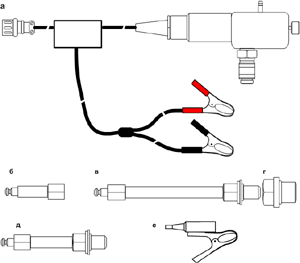 В комплект для измерения компресии в цилиндрах двигателя входят: