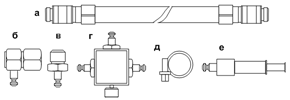 штуцер М14х1,25 L=125 мм (в) и М14Х1,25 L=60 мм (д), для подключения к свечному отверстию цилиндров двигателя,