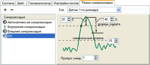 Панель настроек предоставляет возможность создать необходимые установки различных режимов работы прибора, например, настроить основные цвета интерфейса программы, выбрать неодходимый газоанализатор, установить уровень захвата синхронизации, указать количество пропускаемых импульсов, и т.д.